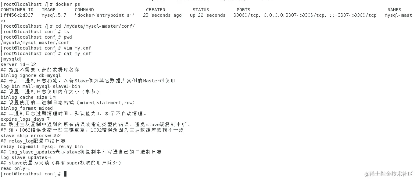 2. 进入/mydata/mysql-master/conf 目录下新建配置