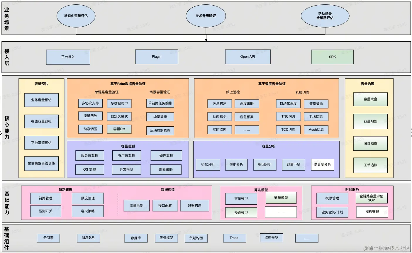 - 容量评估配套基础能力横向打通,提供丰富数据构造、基础组件改造、容灾等基础能力支持 ;