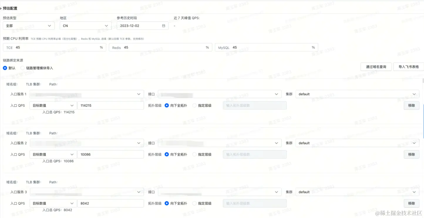 入口服务流量估算:业务目标及转化关系明确后,完成入口服务流量预估。