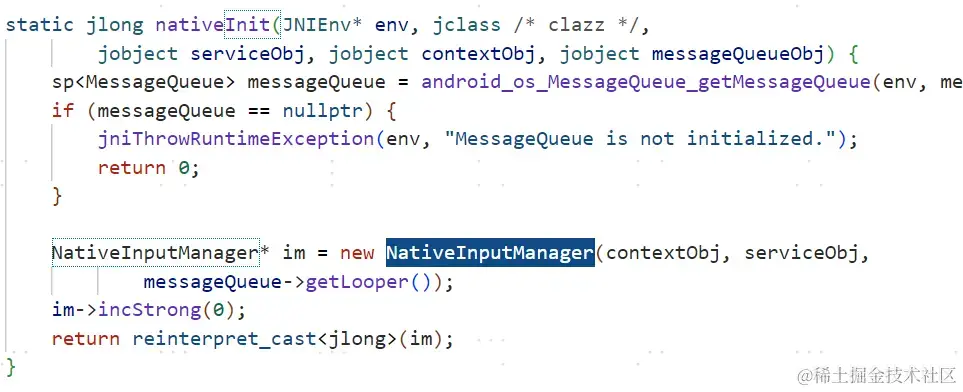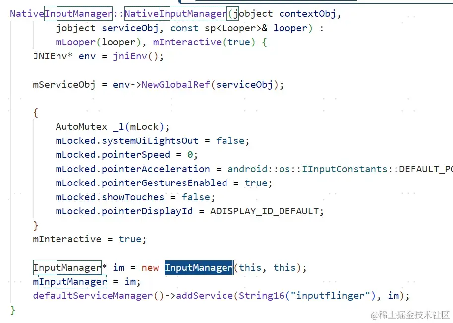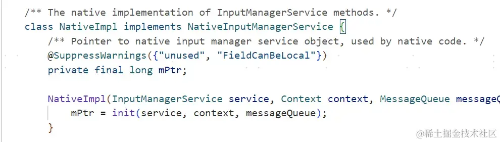 InputManagerService nativeInputManagerService(nativeImpl)JNI 本地c InputManager