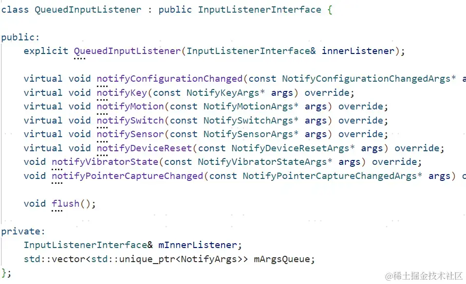 可以看到是实现InputListenerInterface接口的mQueuedListenner