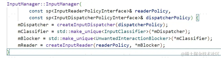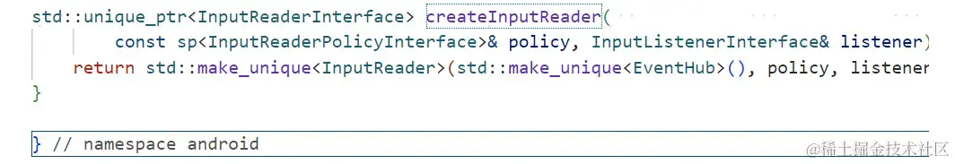 这里用到c++14语法 std:make_unique构建InputReader对象 里面同时包含了Eventhub对象的独享指针