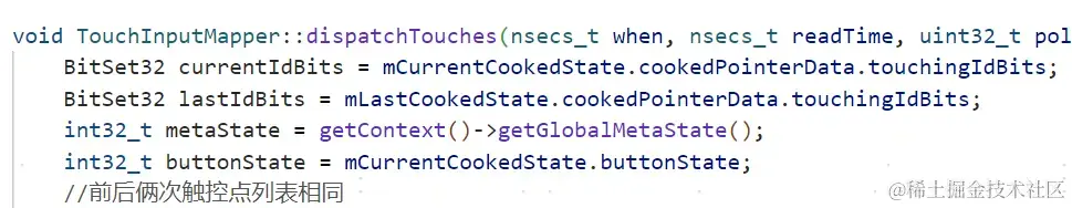 这里会根据前后俩次的触控点列表进行判断当前生成什么样的触控事件