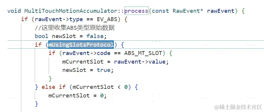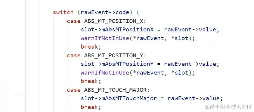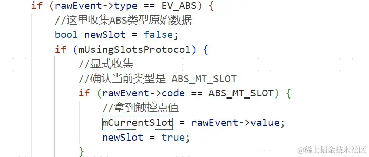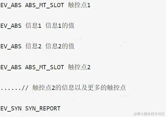 这里作为显示识别 每个触控点 都可以通过ABS_MT_SLOT的值获取slot对象然后收集对应触控点信息