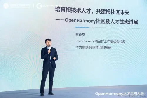 2023年12月12日,OpenHarmony人才生态大会(以下简称“大会”)在上海召开。本次大会以“繁荣生态,人才先行“为主题,邀请知名高等院校代表以及OpenAtom OpenHarmony(以下简称“OpenHarmony")生态企业的专家学者出席大会,共同总结OpenHarmony人才生态建设成果与经验,探讨OpenHarmony人才生态建设前景。OpenHarmony项目群工作委员会代表、华为终端BG软件部副总裁柳晓见出席大会,分享了OpenHarmony社区及人才生态最新成果与进展。