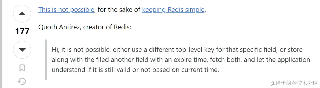 图来源:StackOverflow,Redis 中如何给 HSET 的孩子key(指 field)设置过期时间?