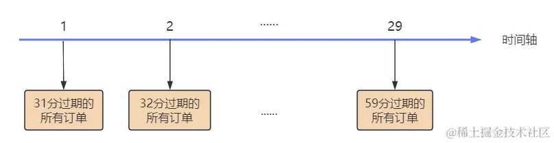 并且,以分钟创建集合,可能存在一个问题:用户的订单本来在 01 秒就过期了,但是在 59 秒才被删除。