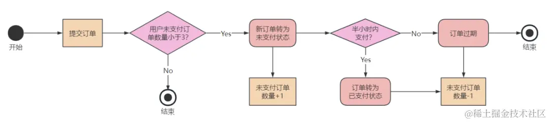 - 订单 2 在半小时内还未支付,就自动过期,用户还可以继续提交订单到未支付状态