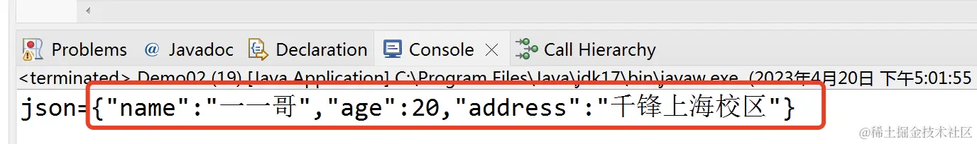 System.out.println("json="+json);