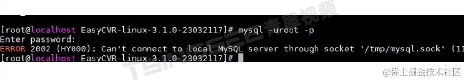 3)随后使用mysql单独链接发现mysql有报错信息,提示Tmp/mysql.sock文件不存在,如下图: