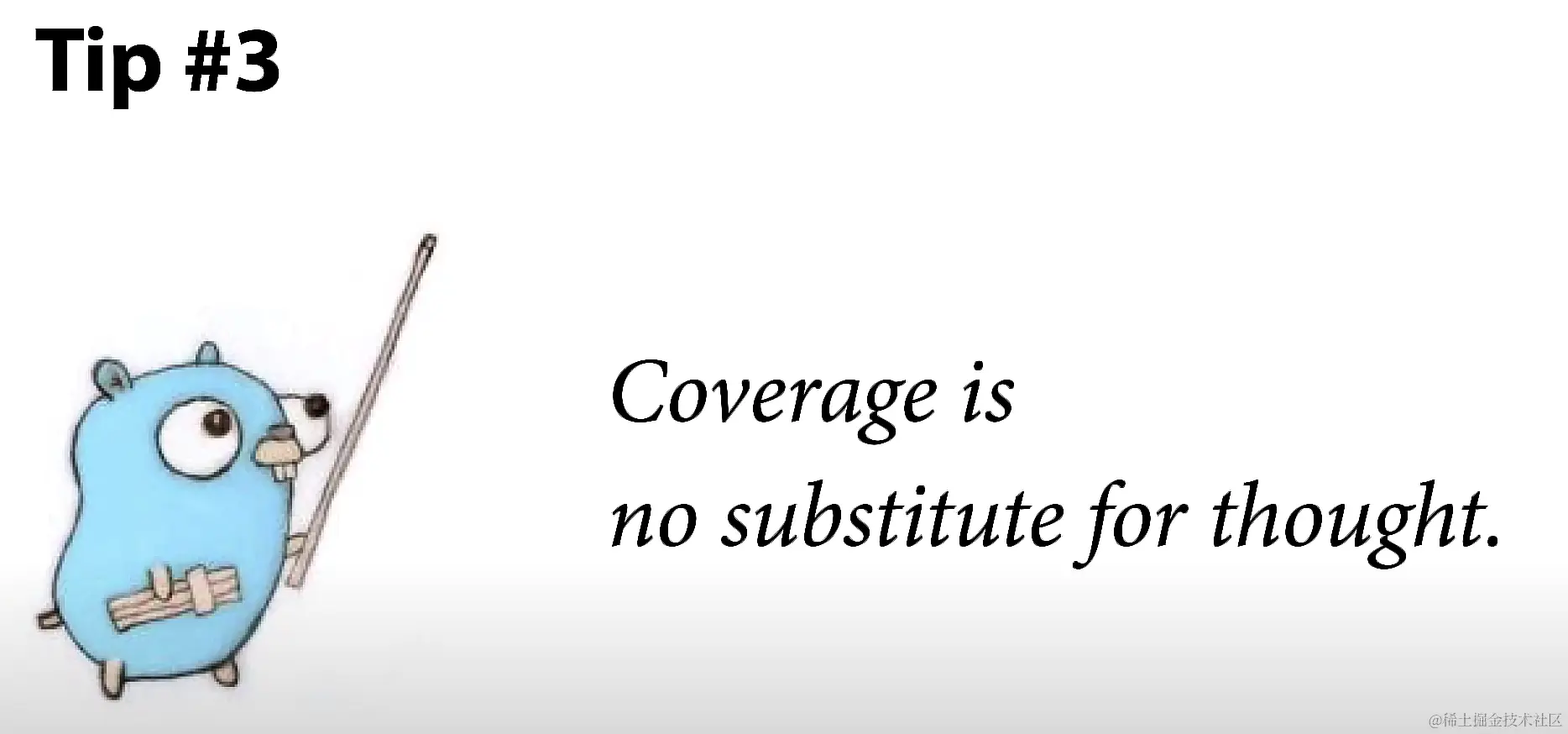覆盖率对于指出你可能忘记测试的代码片段 非常有用,但机械工具无法替代 实际思考困难的输入是什么、代码中的微妙之处, 以及它可能如何崩溃。