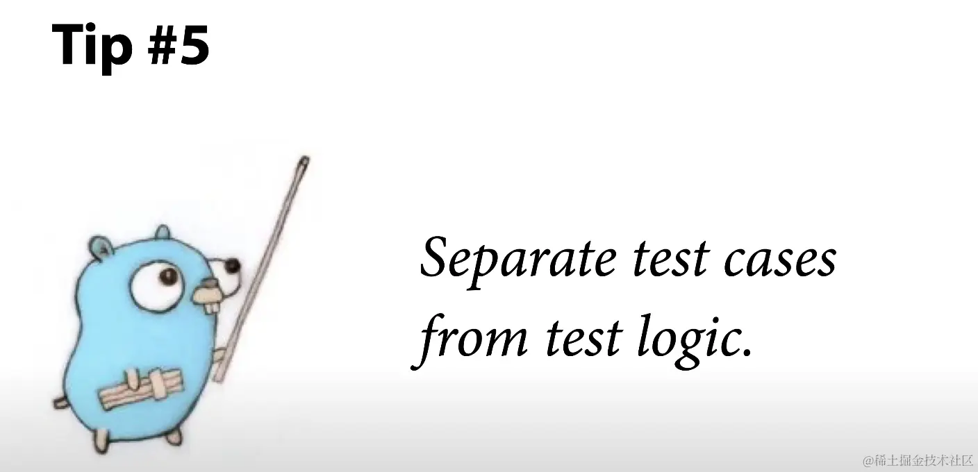 在表驱动测试中,测试用例位于表中,处理它们的循环是测试逻辑,正如我们刚刚看到的那样,将它们分开可以让你在多个上下文中使用相同的测试用例。