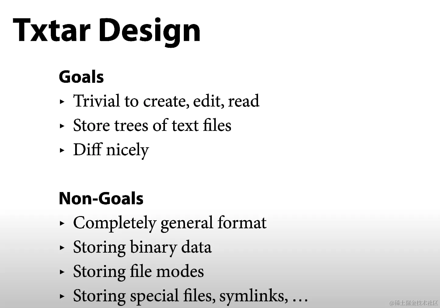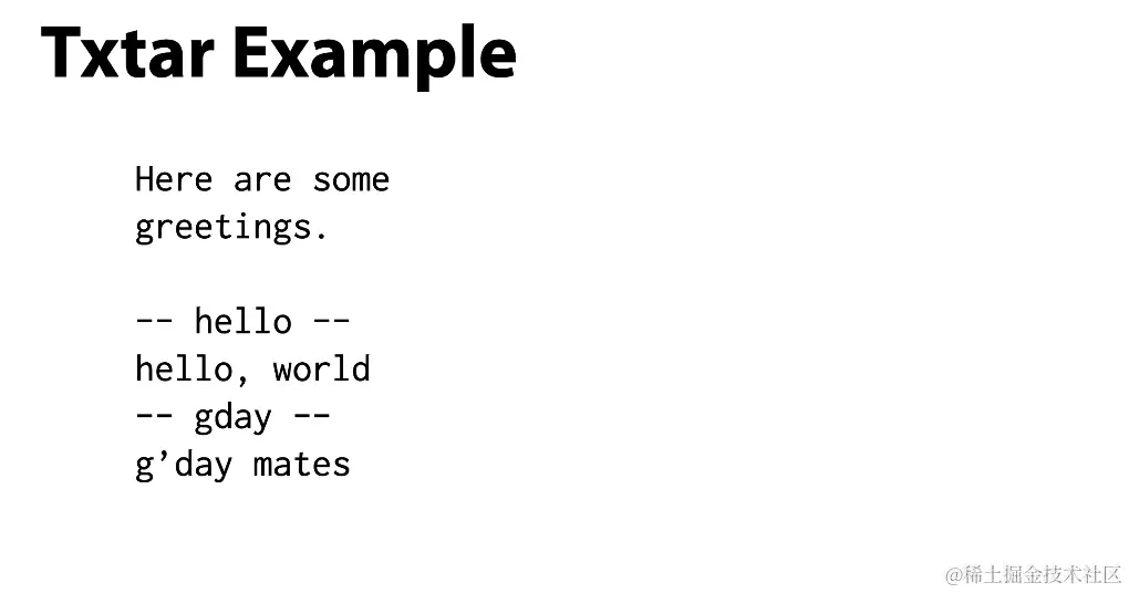 Txtar是我们几年前设计的一种新的存档格式,专门用于解决多文件测试用例的问题。Go解析器位于golang.org/x/tools/txtar,我还发现了用Ruby、Rust和Swift编写的解析器。