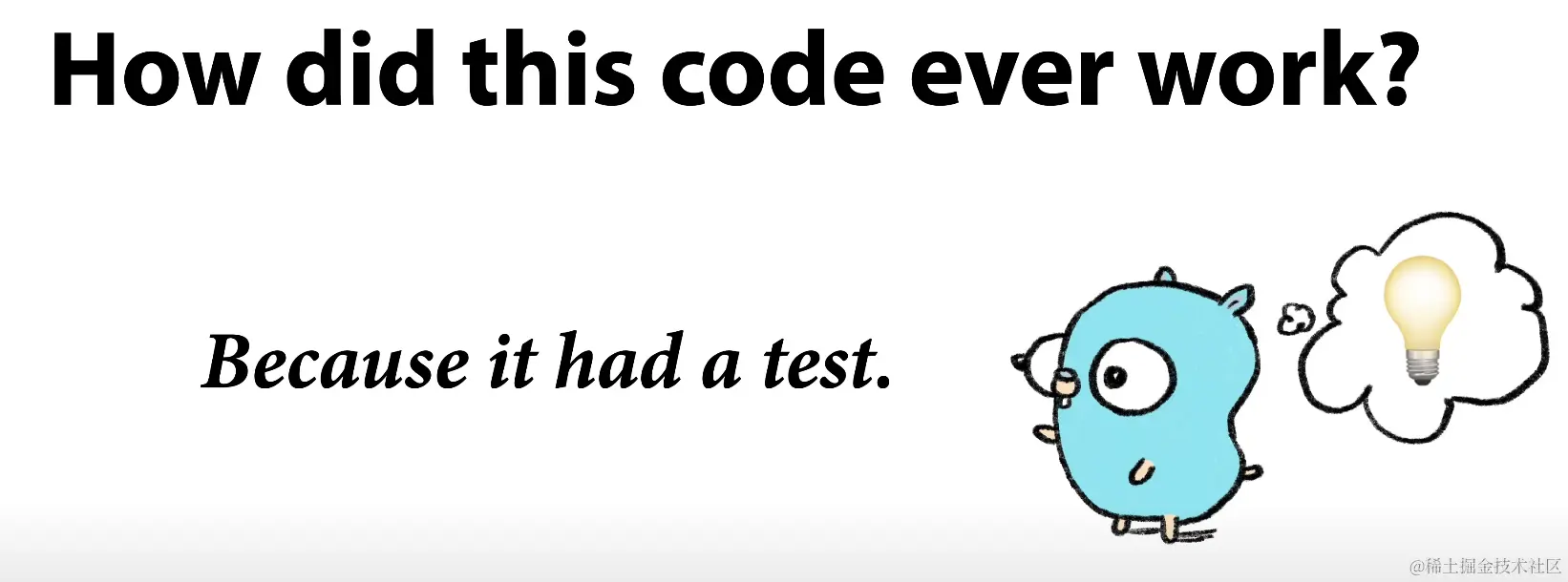 如果你是代码的作者,你可能会觉得自己很幸运。如果是别人写的代码,你可能会对他们评价不高,然后也认为他们很幸运。但大多数时候,答案并不是运气。这段代码能够工作的原因几乎总是因为它有一个测试。当然,代码是错误的,但测试检查了它是否足够正确,使系统的其他部分能够正常工作,这才是重要的。