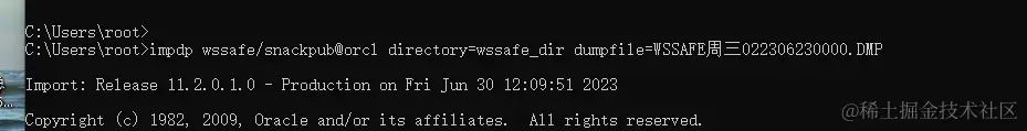 impdp wssys/snackpub@orcl directory=wssys_DIR dumpfile=wssys周三022306230000.DMP