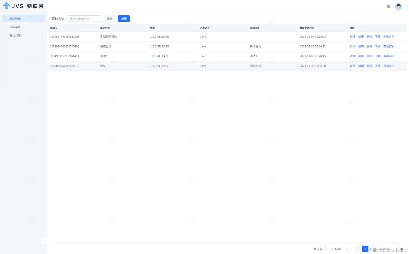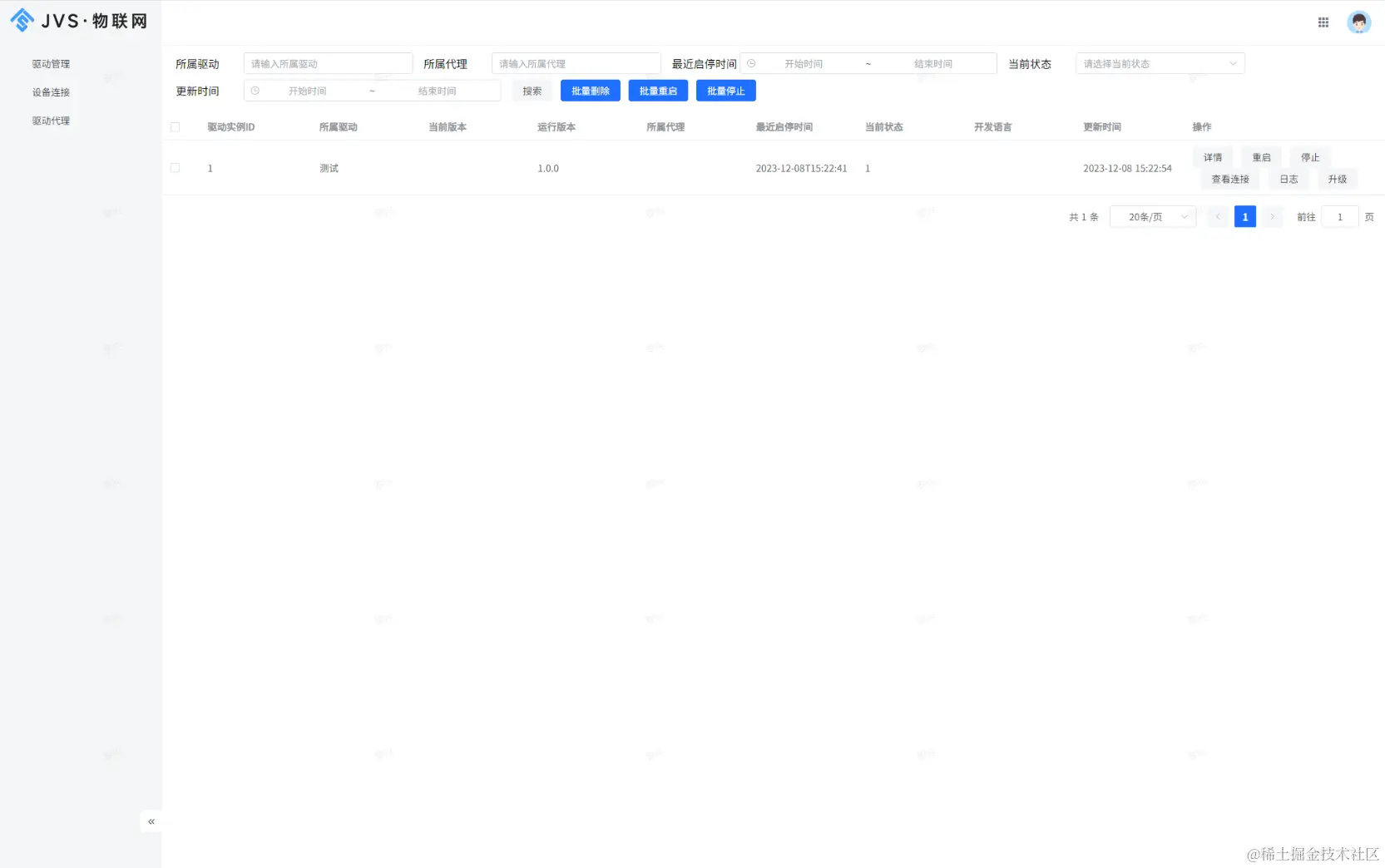 2.新增驱动实例列表,可查看和检索驱动实例;