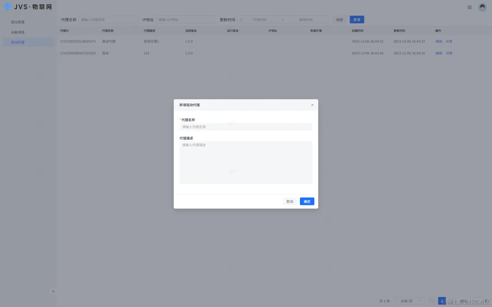 驱动代理通常需要提供一些必要的信息,如驱动代理的名称、描述、连接参数等,以便将新的驱动代理添加到物联网平台中。用于连接物联网设备和物联网平台,并帮助两者之间的通信和数据传输。通过驱动代理,物联网平台可以更好地管理和控制与设备之间的交互。