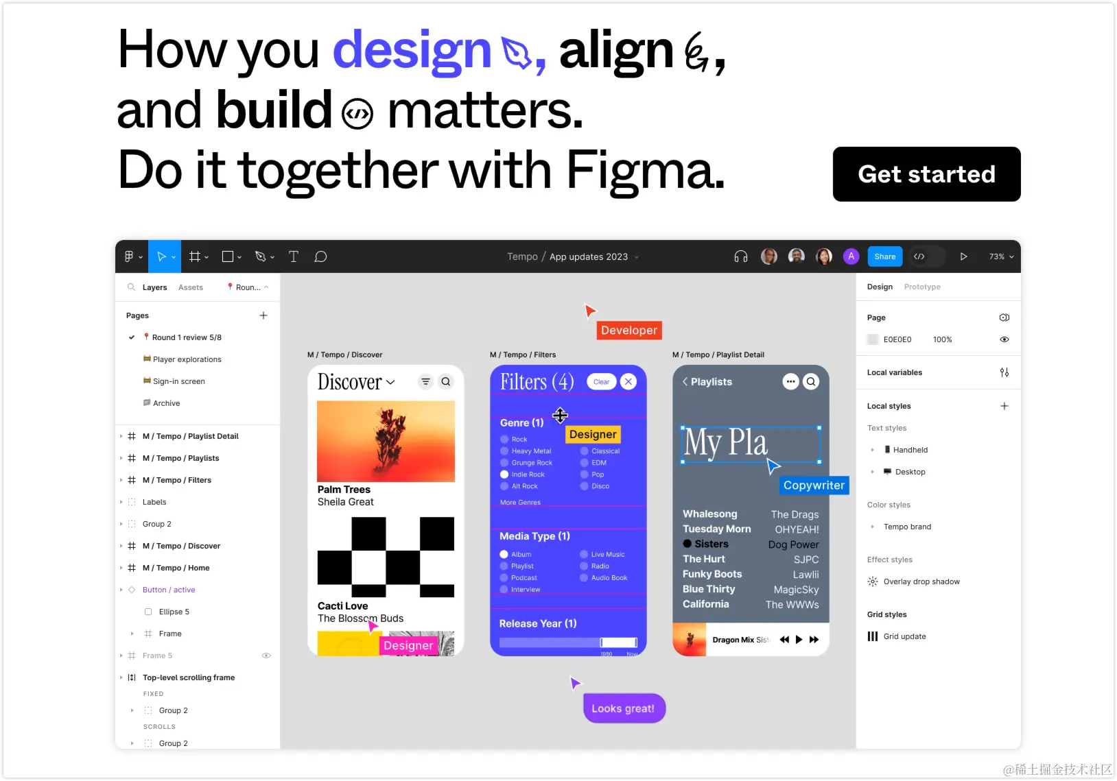 Figma也是一款在线矢量设计工具,并且其产品功能也非常强大。Figma的官方社区为用户提供了大量丰富的项目模板与素材,用户能够直接进行浏览和复用。此外,Figma还有全球的开发者为其开发的插件,使其产品功能得到进一步补充和完善。