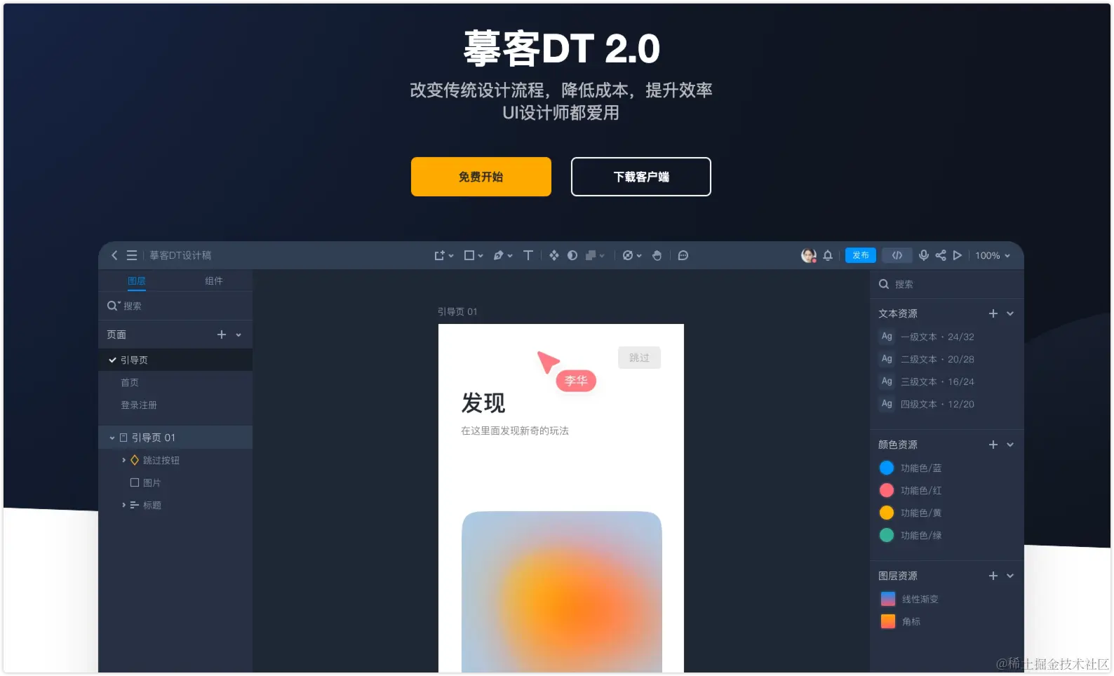 摹客DT是国产在线矢量设计工具中的代表,拥有非常扎实的矢量编辑基础,制作图标、插图等内容都很合适,各类简单或复杂的设计想法都能轻松呈现出来。而对于UI设计来说,摹客DT也同样能够满足需求,丰富的属性设置、完善的组件管理机制以及强大的性能,能够很好地支撑各种体量的设计需要。此外,作为一款在线的设计工具,摹客DT在多人实时编辑,团队协作方面,也做得同样出色。
