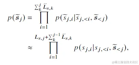LLMLingua同样是使用token熵值来对内容质量进行打分,不过进一步放松了token独立性的假设。 计算公式如下,先把整个上文context分段,论文使用100个token为一段。以下为第j个段落中第i个字,是第j个段落前所有段落经过压缩后的内容。也就是在计算当前段落每个字的熵值时,会把之前已经压缩过的内容拼接在前面,使得对更大粒度的段落熵值估计更加准确。