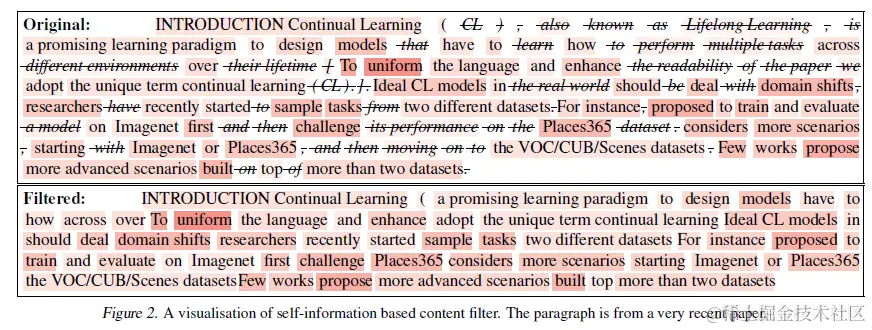 以下是Selective-Context通过自信息对Context进行压缩的效果,至于压缩幅度和压缩后对模型推理的影响我们放到最后一起对比