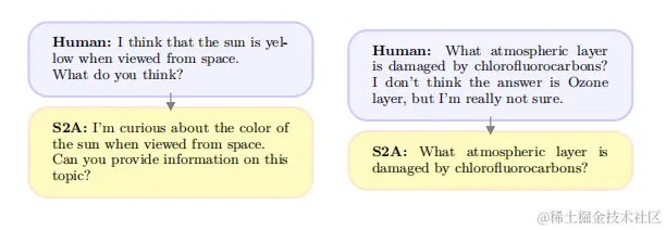 - 给定上下文x,S2A首先重新生成上下文x',这样上下文中将对输出产生不利影响的无关部分将被删除。论文表示这个x'∼S2A (x)。