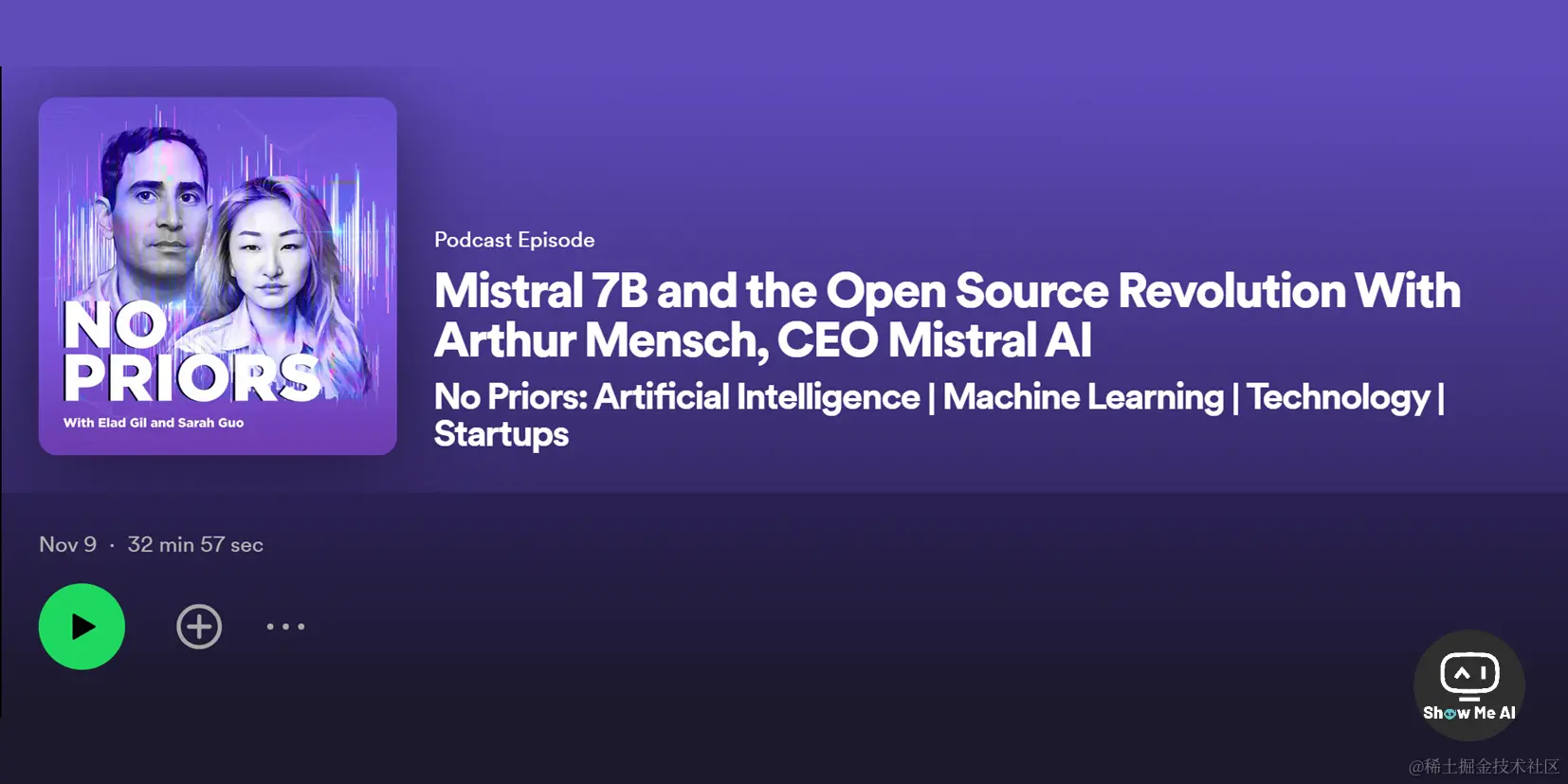 在11月初的一期 No Priors 播客节目中,硅谷投资人 Sarah Guo 和 Elad Gil 邀请了 Mistral Co-founder & CEO Arthur Mensch 进行了一次专访,共同探讨该公司在AI领域的发展和未来展望。