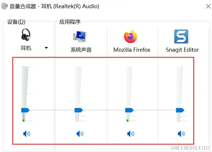 步骤2:可以右键点击音量图标,选择 【打开音量合成器】,检查各个应用程序的音量设置,确保它们都没有被静音或者设置为最低音量。