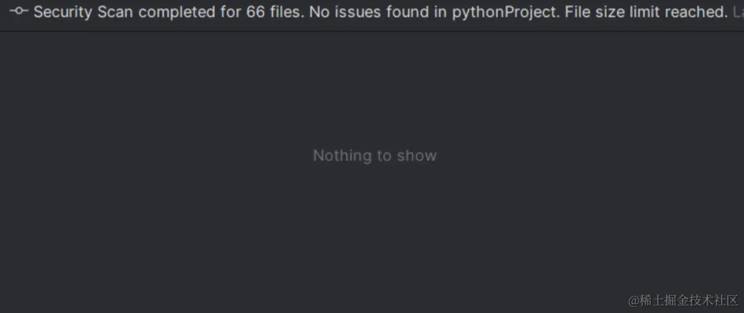 咱们可以耐心等待看看扫描结果。结果显示扫描一切正常, 这说明这份参考示例代码是没有问题的。这符合咱们的预期, 说明 Amazon CodeWhisperer 的安全扫描功能还是没问题的~