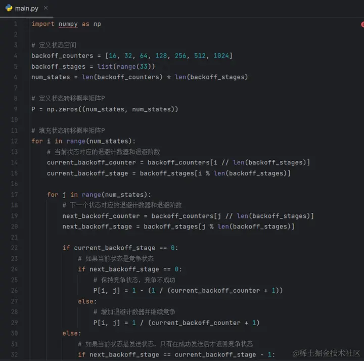 下一步,我继续在注释中写明我需要做到哪些事情。比方说我想继续写一个状态转移方程,用来求马尔科夫链模型的概率矩阵。