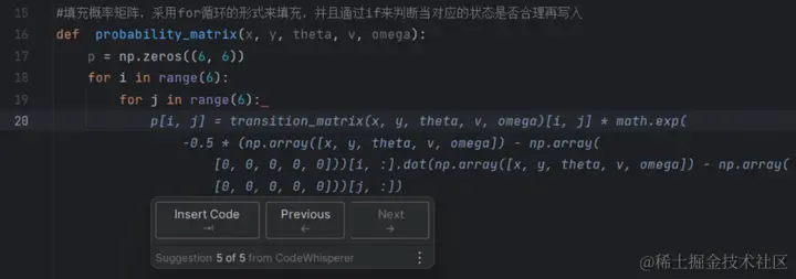 这说明 Amazon CodeWhisperer 是真的能够覆盖很多场景,就连高级数学知识、数据科学类方面的代码,Amazon CodeWhisperer 也是能够帮助我们进行一个补全编写的!