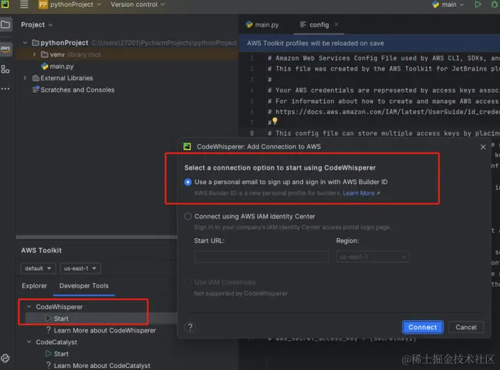 2.1 Pycharm 中快速导入 Amazon CodeWhisperer