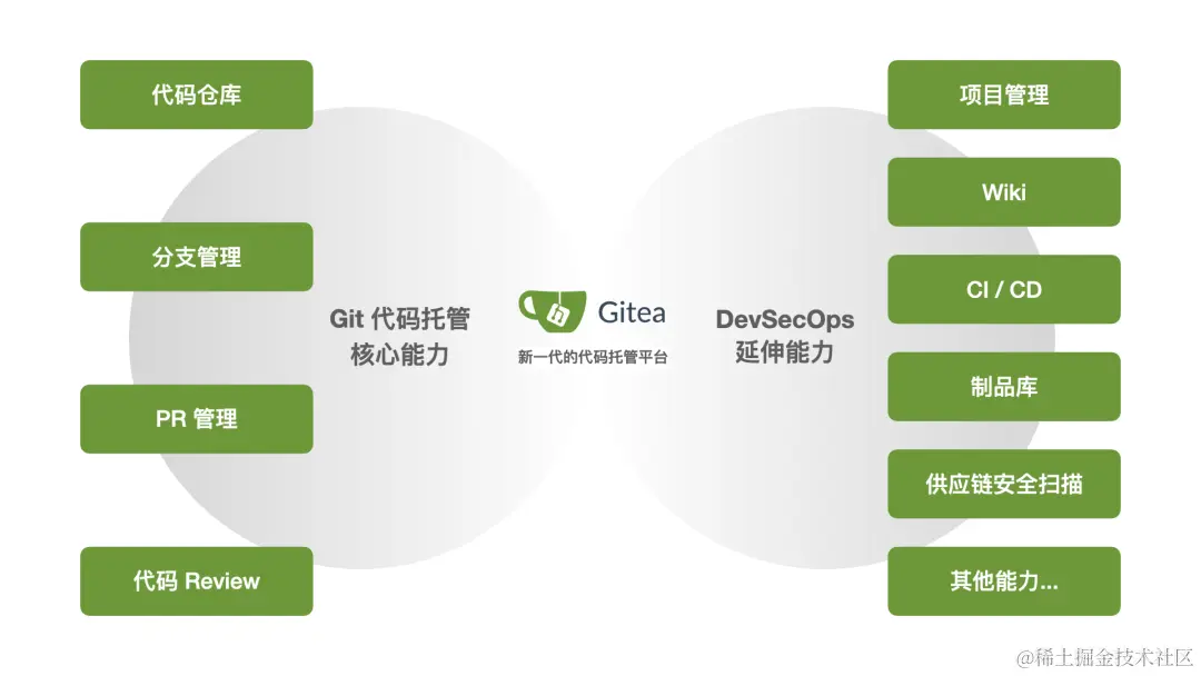 新一代的代码托管平台是提升软件研发效能的关键。 Gitea具备基于Git的核心代码托管能力和DevSecOps延伸能力,为广大软件开发者提供接近GitHub的使用体验,并且支持用户开展私有化部署。