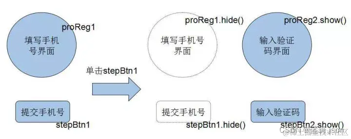 用jquery来实现大概的思路就是选择流程dom对象,点击按钮隐藏当前活动流程dom对象,显示下一流程dom对象如下图(代码就不上了,上了就篇文章就没了..)