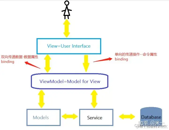 - ViewModel:视图模型层,用来连接Model和View,是Model和View之间的通信桥梁