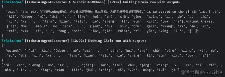 根据运行中的步骤可以看到,通过大模型的分析,确实调用了预先设置好的 Tool 实例对字符串做了处理,将它转换成拼音形式,达成了最终目的。