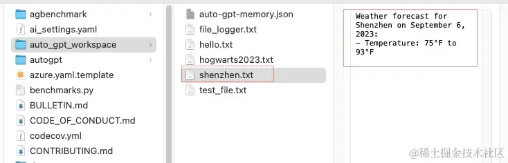 8.接下来就可以终止任务,去本地的auto_gpt_workspace目录中看到对应的文件信息。