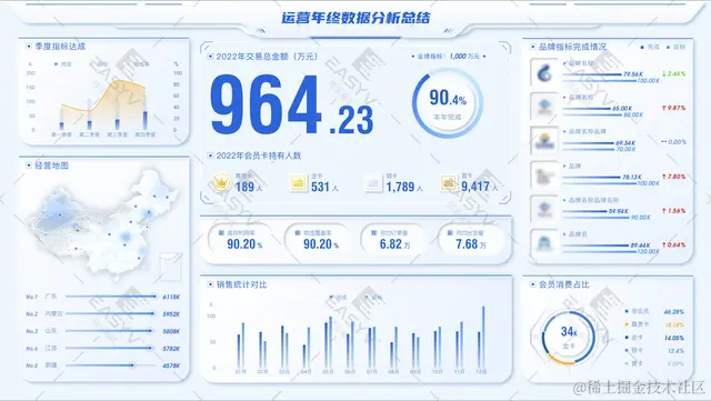 本着“以人为本”的目的,来建立客户、物流和产品的联系,大屏分为三个场景打造出“人、货、场”的概念,即客户、产品、店。主屏利用地图上的点来直观的看出门店的分布情况,根据各个地区的销售数据和人流的情况来直接反应出人与场的关系。通过子屏,对人和货的分析来将数据资源转化为业务能力,为客户提供个性化的体验。(了解案例详情或更多行业应用可前往易知微官网查看)