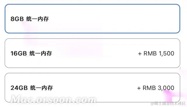 ▲ M3 芯片款 MacBook Pro 内存升级价格
