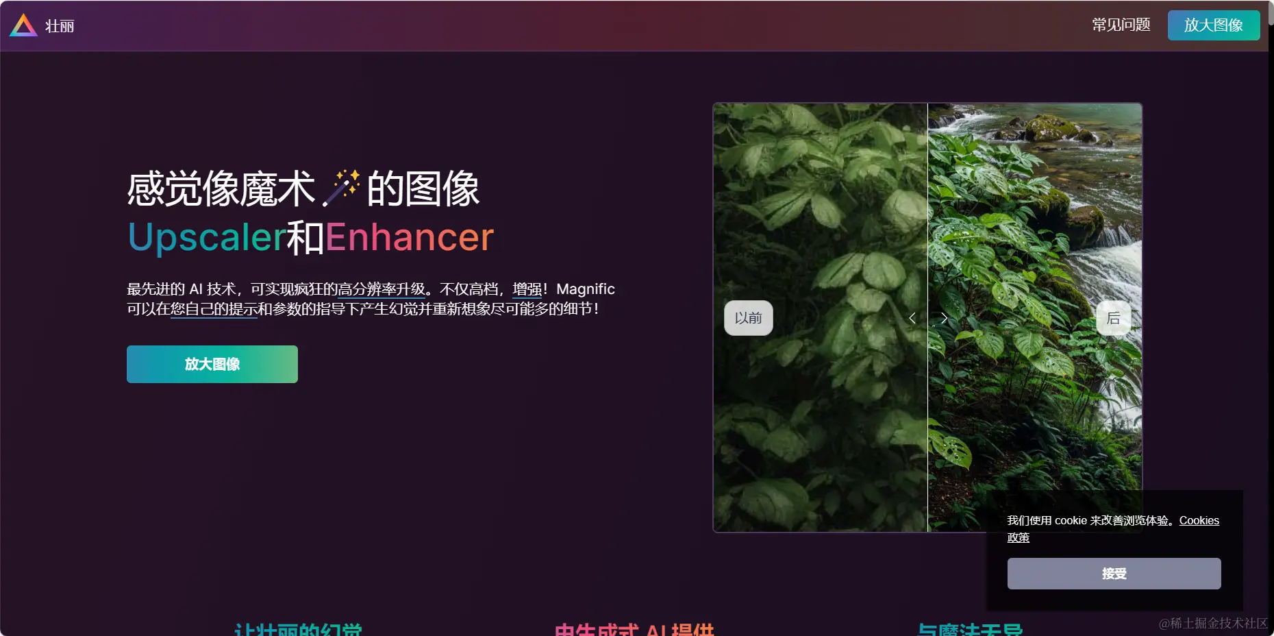 Magnific ai,一个基于生成式AI的图像超分辨率增强工具,不仅可以提高分辨率还可以生成更多细节,更可以依靠自然语言提示和“创意”滑块等控制参数,让AI主动增加和“猜想”生成更多细节,不论是网图、照片还是漫画都可适用,可以算得上是目前最佳的图像增强应用了。