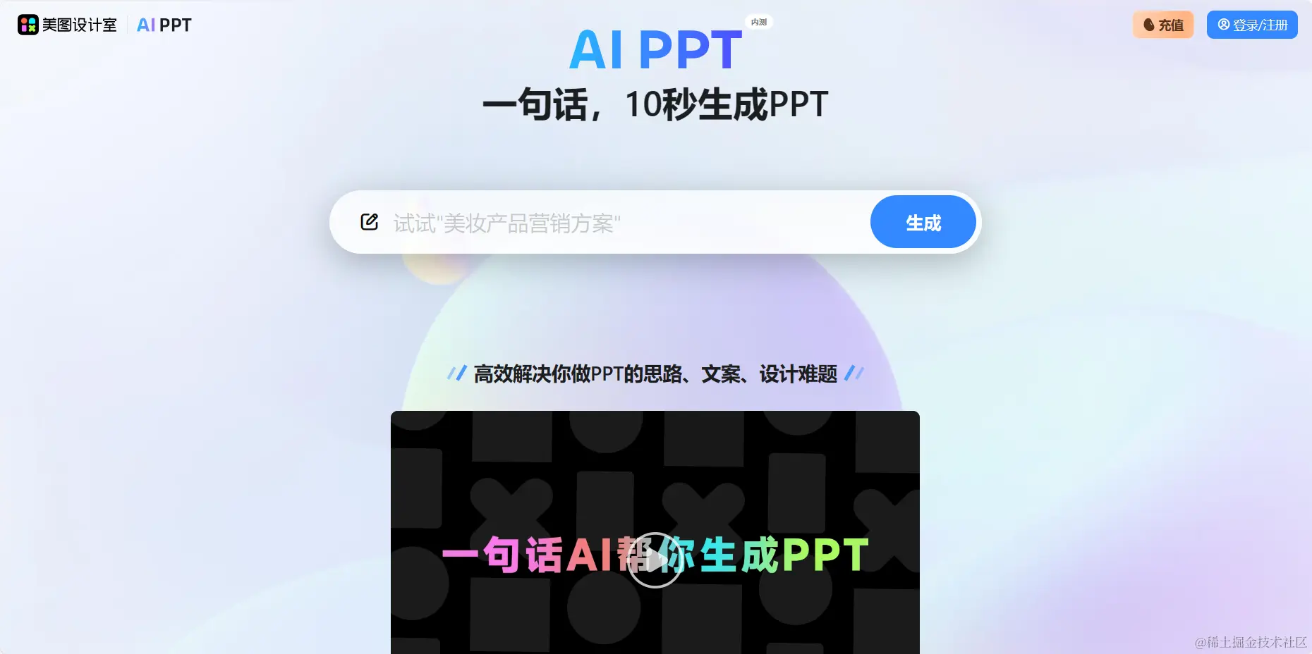 在我们工作的时候难免会有制作PPT的时候,而美图 aippt是美图设计室提供AI生成PPT的设计工具,可以轻松打造精美的PPT,同时也支持一键生成PPT、智能排版,以及丰富的模板和素材库。