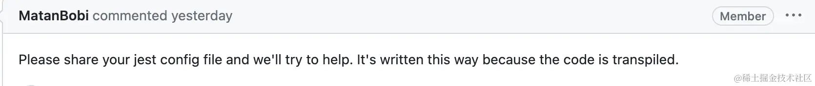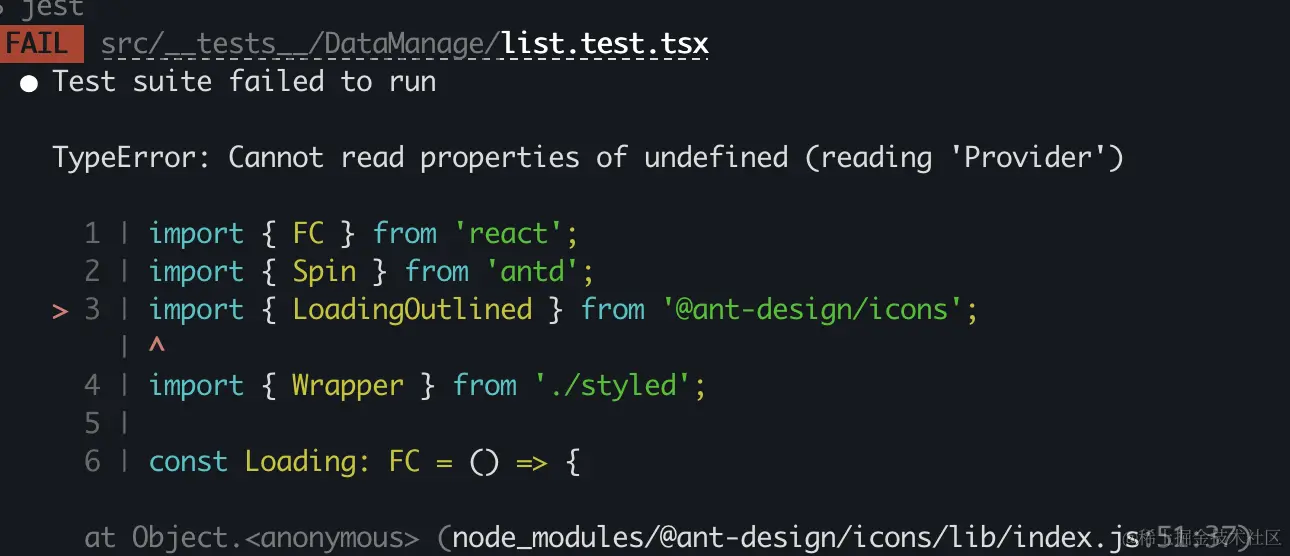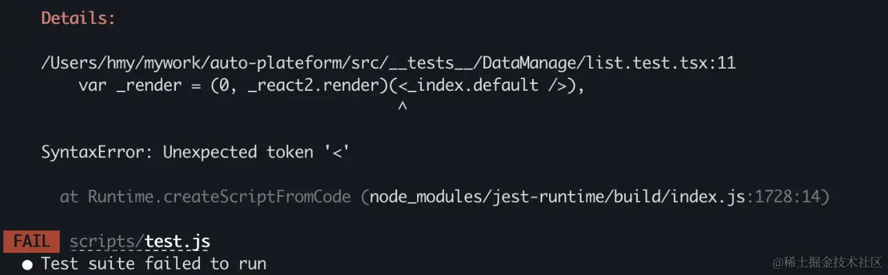 第二天一早来到公司 ,我看了下Jest的config配置,我首先按照agentdylan给的建议去修改了配置并重新运行测试命令,很遗憾没有解决。