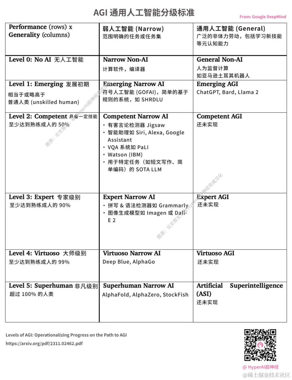 DeepMind 发布 AGI 分级标准OpenAI 推出的 ChatGPT 被视为 L1 级别 AGI图源:论文原文,由 HyperAI超神经完成汉化