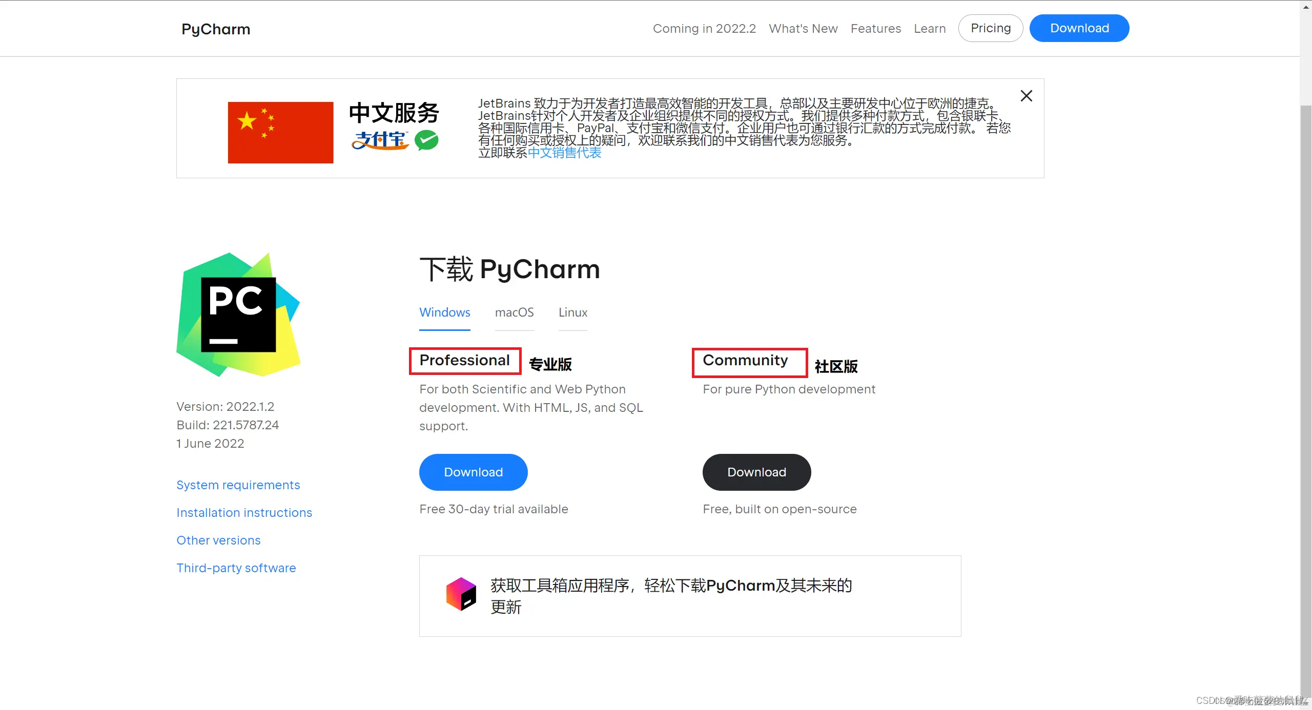 建议官网下载www.jetbrains.com/pycharm/dow…