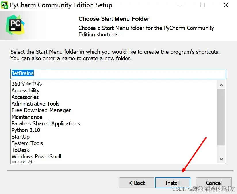 4.进入 Choose Start Menu Folder 页面,直接点击 Install 进行安装