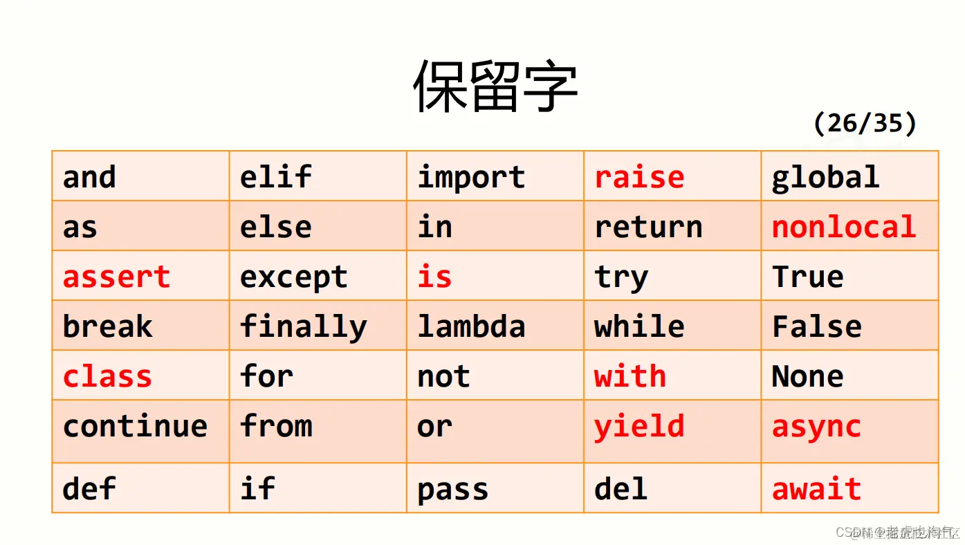 另外需要我们掌握python中的保留字。