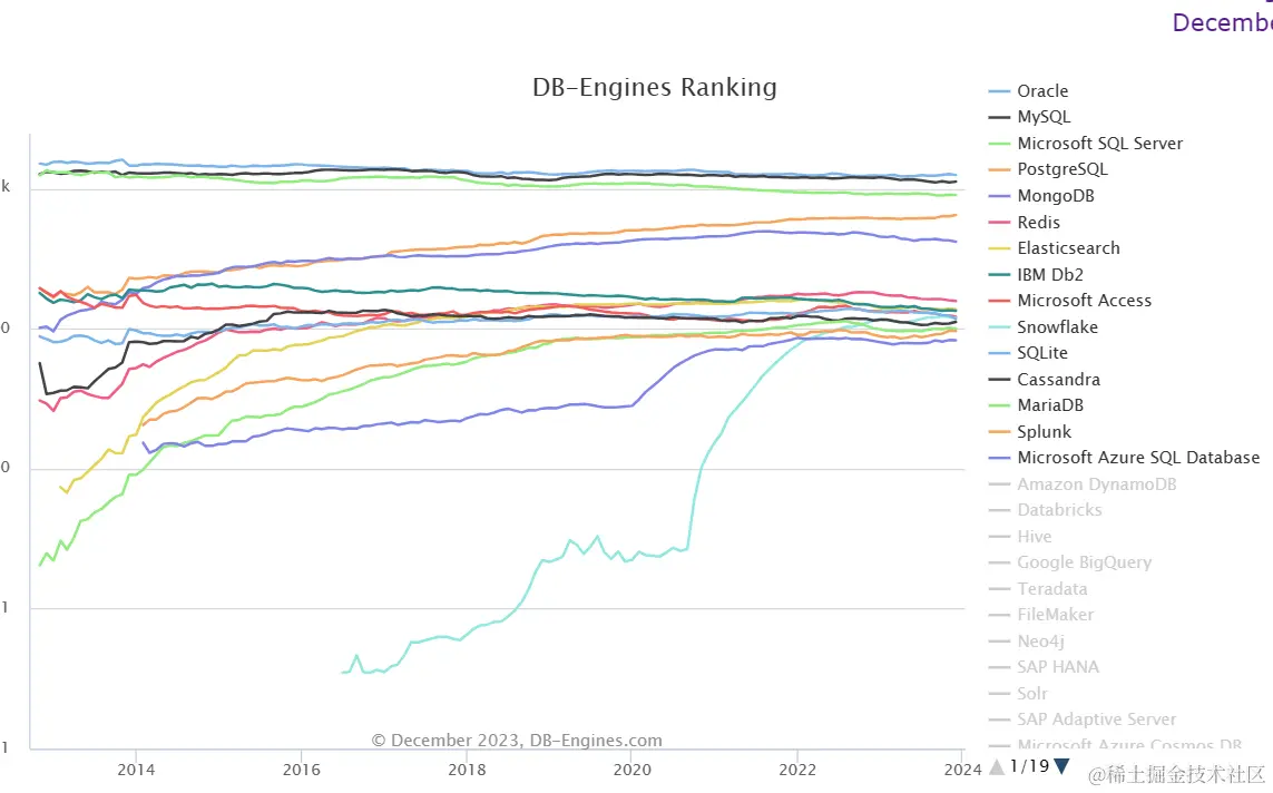 MySQL是一款备受欢迎的关系型数据库管理系统(RDBMS),最初由瑞典公司MySQL AB开发,目前隶属于Oracle Corporation。在DB-Engines的排名中,MySQL稳居第二位,仅次于领先者Oracle,并保持了相对稳定的排名。