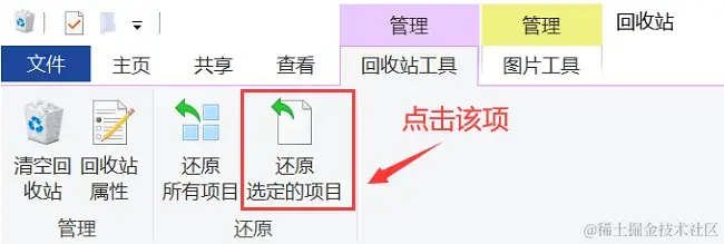步骤2:看看剪切后丢失的文件是否在回收站中,找到文件后,可以直接将其拉到电脑桌面或点击 【还原选定的项目】 来完成文件还原。