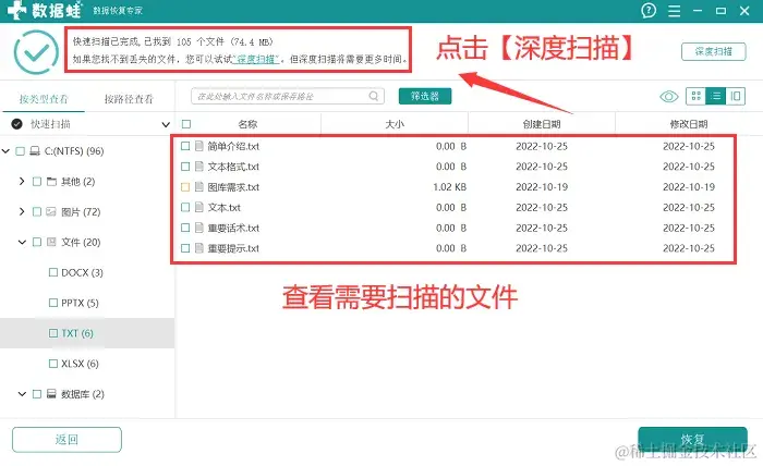 步骤3:首次扫描完成后,软件会呈现小部分文件,用户可以先对这部分文件进行查看,看看是否扫描到需要恢复的文件,如果没有,点击【深度扫描】 ;