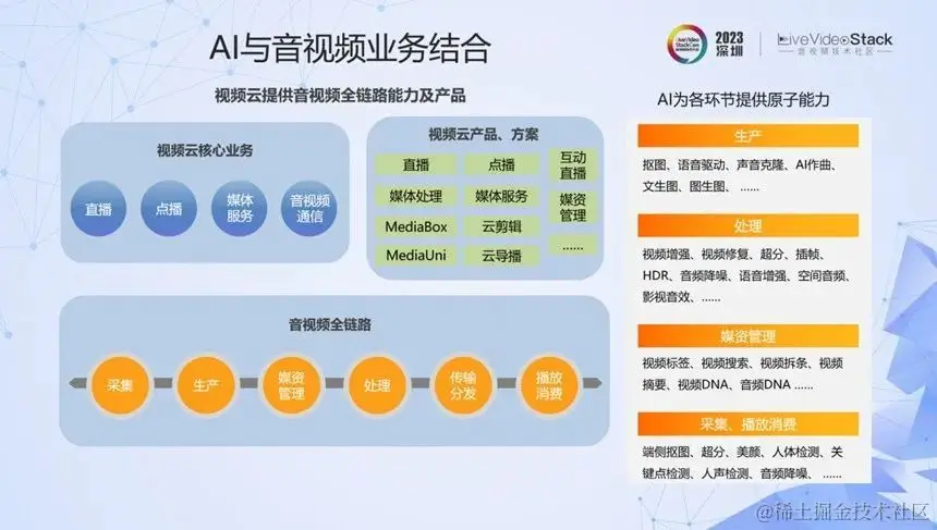 当然,AI除了提供算法原子能力之外,也渗透到视频云的引擎层、调度层、业务层,进一步提升它们的智能化水平。